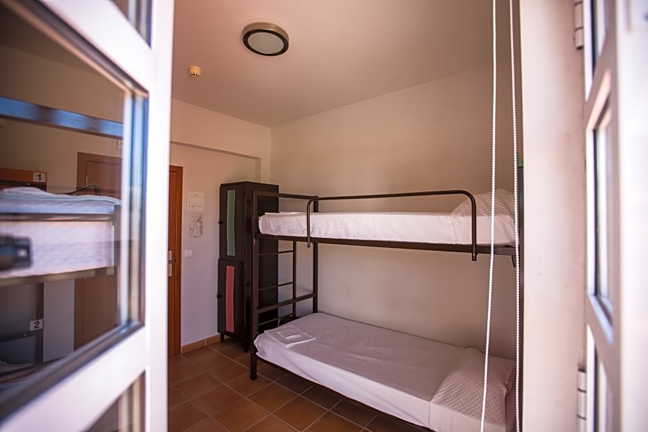 Private 4-bed mixed room shared bathroom is 215 square feet and includes bunk beds.